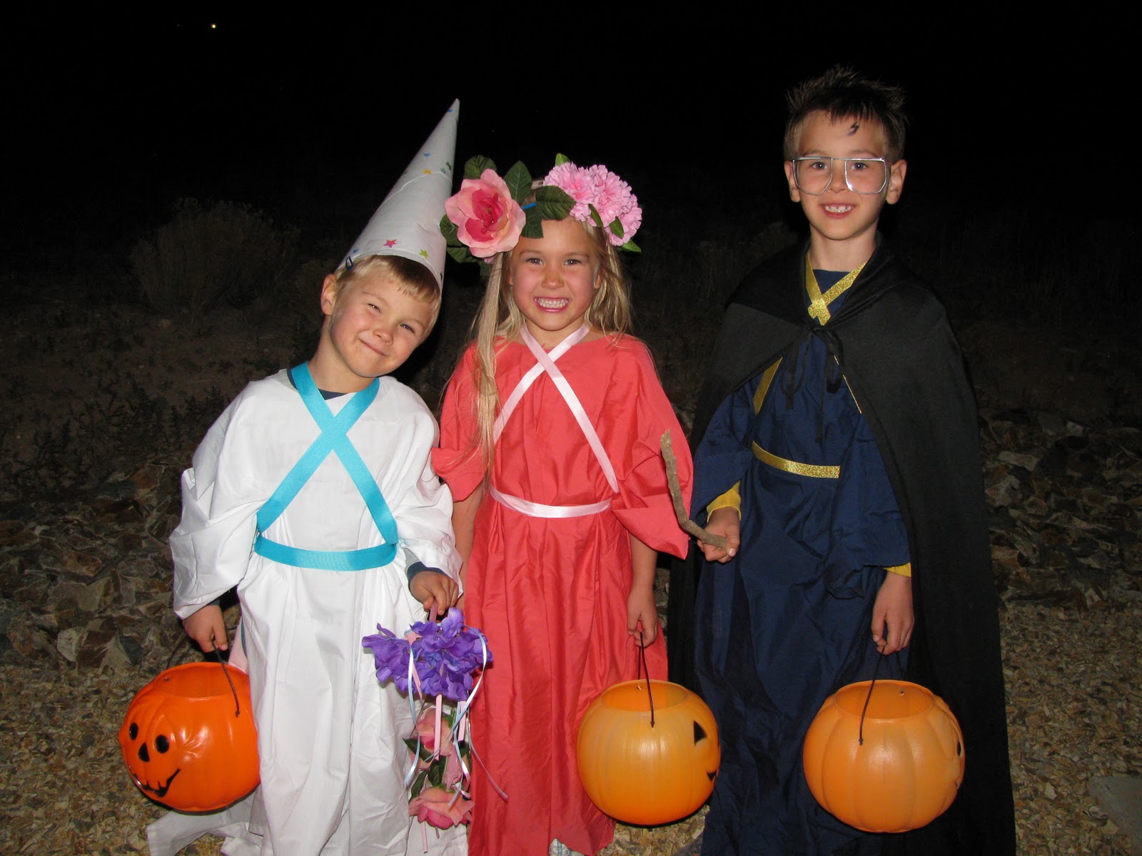 Even though we only went to the houses on our street, mind you on one acre lots, so not close together, they came home with their pumpkins over half full! Way, WAY too much candy! Lucas had apparently overheard Shane and I discussing how country folk often drive into town for more candy opportunities. He informed us as we walked around our road that the country was the best place to trick-or-treat! More fun and not too much candy!